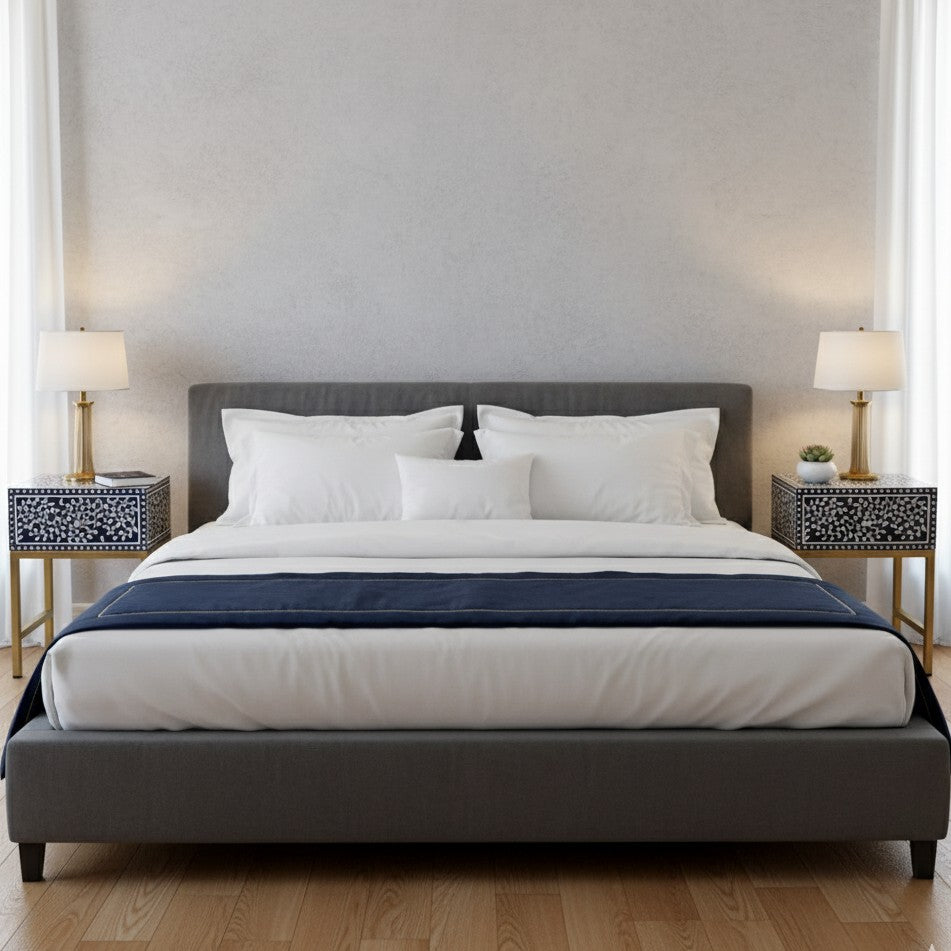 Modernes Schlafzimmer: Kombinieren Sie die Nachttische mit einem Bett in klaren Linien und neutralen Farben. Das florale Muster setzt einen spannenden Kontrast und verleiht dem Raum eine dynamische Note.
