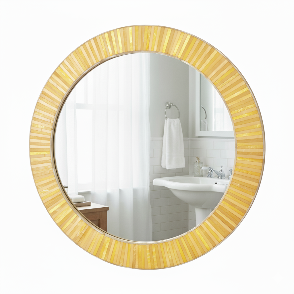 Dieser atemberaubende Spiegel ist ein wahres Kunstwerk und verleiht jedem Raum eine einzigartige Atmosphäre. Der Rahmen besteht aus handgefertigten Bone Inlay-Elementen, die in einem wunderschönen Beige, Mint, Grau oder Schwarz gefärbt sind. Die feinen Streifen und das geometrische Muster erzeugen eine optische Tiefe und verleihen dem Spiegel eine moderne Note.