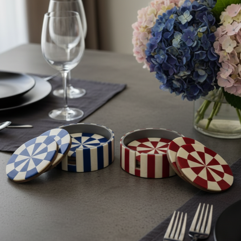 Das bezaubernden Untersetzer-Set "FINLAY", bestehend aus vier Untersetzern, ist ein absolutes Must-have für alle, die Wert auf hochwertige und einzigartige Wohnaccessoires legen. Das kunstvoll gearbeitete Muster, inspiriert durch unser Markenlogo, verleiht jedem Tisch eine besondere Note. Das Untersetzer 4er-Set wird in einem formschönen und passenden Intarsien-Halter geliefert.
